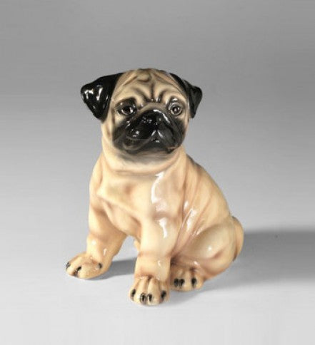 Statua di carlino, realizzata in ceramica, dipinta a mano.