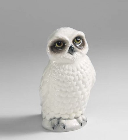 Civetta bianca portascopino in ceramica, decorato a mano e comprensivo di scopino in PPL.
