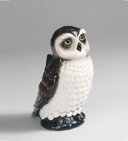 Civetta portascopino in ceramica, decorato a mano e comprensivo di scopino in PPL.