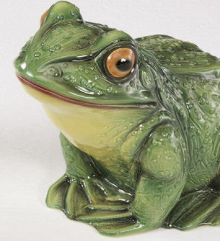 Rana in ceramica lavorata in maiolica con doppia cottura a 990°.