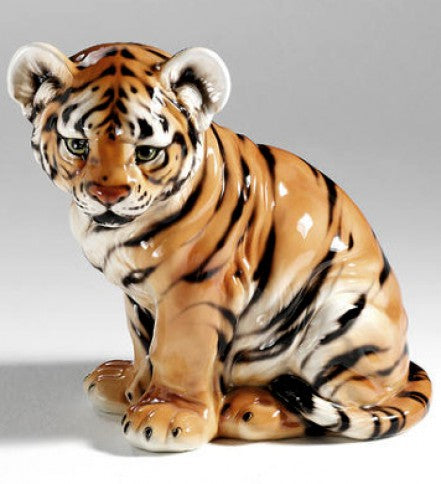 Tigrotto cucciolo, realizzato in ceramica, dipinto a mano.